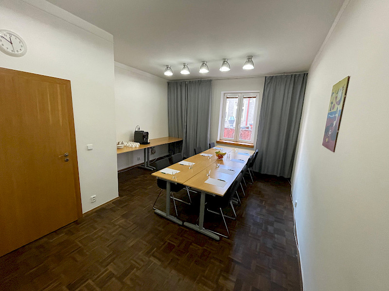 Poptat prostorEin luftiger, großzügiger Raum voller Tageslicht, der eine variable Anordnung von Tischen und Stühlen ermöglicht. Das Klassenzimmer eignet sich zur einmaligen oder langfristigen Anmietung, insbesondere für Bildungsaktivitäten, Seminare, Tagungen, Besprechungen und mehr. Der Raum eignet sich auch für IT-Schulungen mit hohen Anforderungen an die Internetverbindung. Dozenten und Trainer können eine weiße Magnettafel, einen Datenprojektor, eine Leinwand, ein Flipchart, ein Notebook usw. nutzen weitere Ausstattung nach Vereinbarung. Für eine bessere Akustik sind in unseren Schulungsräumen abgehängte Decken eingebaut. Toilettenanlagen und Küche in unmittelbarer Nähe. Wir drucken Materialien für Schulungen oder Beratungen zu sehr günstigen Preisen und ersparen Ihnen Arbeit. Bei Interesse sorgen wir für Erfrischungen (Kaffeepausen) und Service nach Ihren Wünschen.
