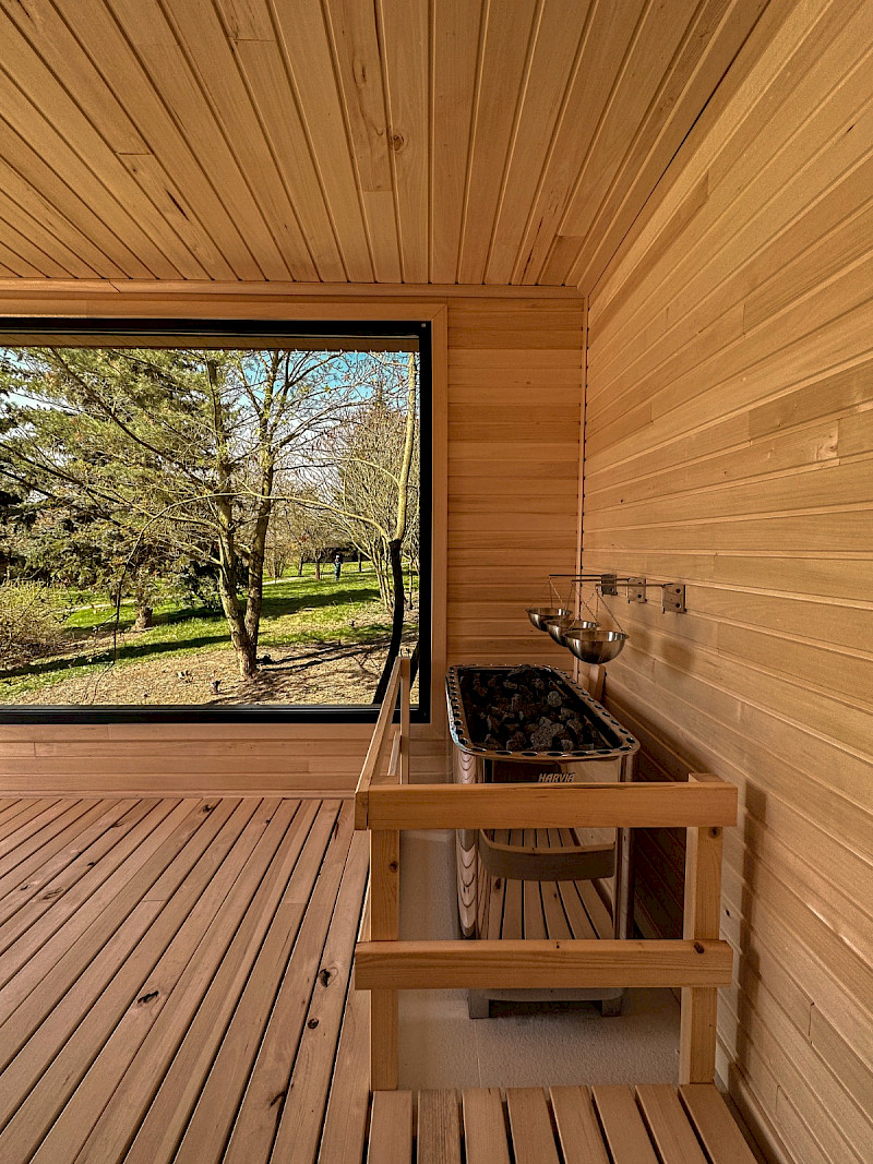 Sie werden eine Welt der Entspannung mit Wellness-Dienstleistungen genießen. Wärmen Sie Ihren Körper auf und spülen Sie Giftstoffe in 2 Panoramasaunen aus. Anschließend können Sie sich im lebendigen Wasser des Biotopsees angenehm abkühlen.