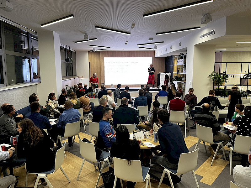 Are you looking for the ideal place for a corporate event, conference or networking? FLEKSI Building B in Brumlovka offers a modern event space directly accessible from the street, with a capacity of up to 90 people, daylight and excellent transport accessibility.