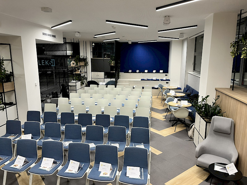 FLEKSI is a meeting place, providing you with exceptional spaces for one-time and long-term use for negotiations and meetings with business partners, clients or within the company. Representative meeting rooms are equipped with the latest AV technology with intuitive controls. A receptionist will welcome you and your guests in the premises, offer selected drinks or arrange refreshments based on prior communication.