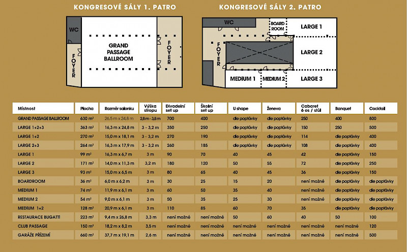 We have excellent technical equipment for you, and especially variable conference rooms that provide facilities for more than 1,000 people. It is the only one in Moravia that offers audio-visual equipment, including a built-in LED screen of first-class quality.