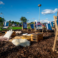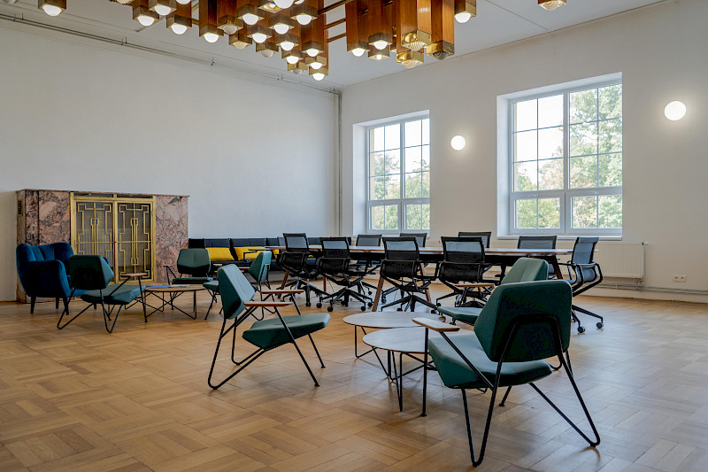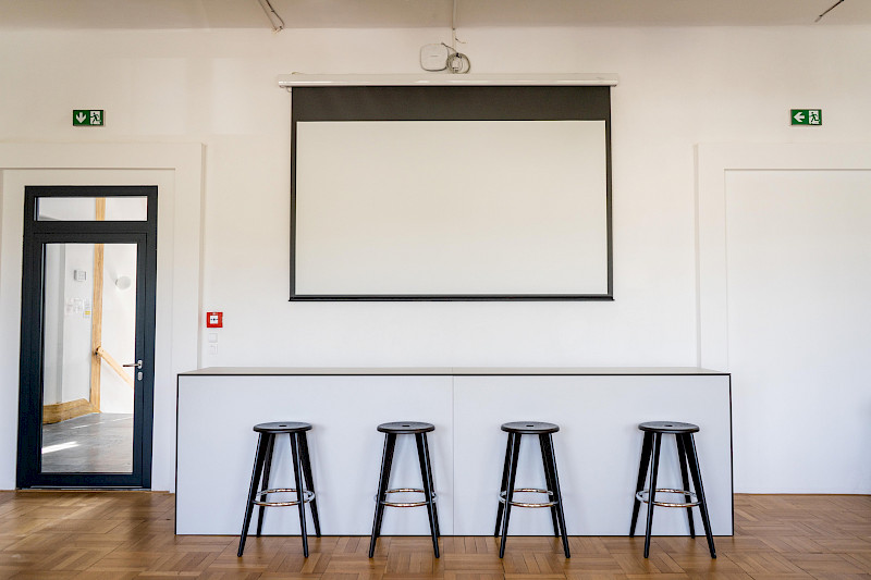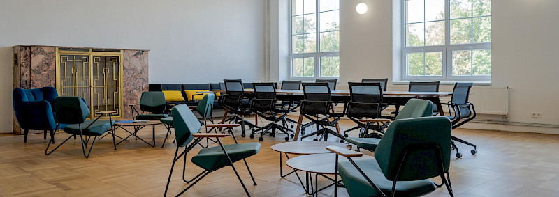| 53 m² | 16 people | shared kitchen, flipchart | Blue lounge |