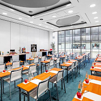 Inquire venueThe hotel offers 16 flexible conference rooms for up to 645 people, a restaurant with sliding walls for 220 people and a generous foyer. From early morning until late at night, our experienced team will be at your disposal to provide any support throughout the entire event.