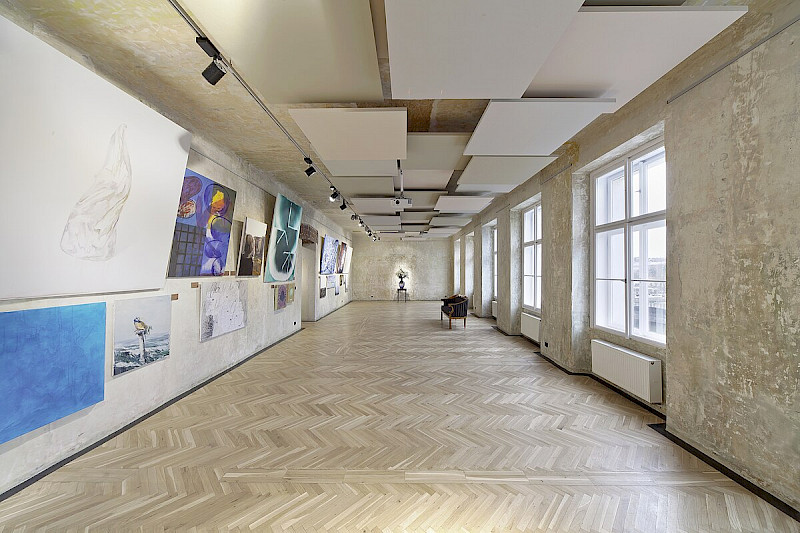 The gallery is located on the 2nd floor of the SmetanaQ building and has the most beautiful view of Prague Castle and Petrin Hill. The space with a total area of 319 m2 is divided into three rooms - two halls with windows and a foyer. The premises are always rented to one client, which brings security of privacy.