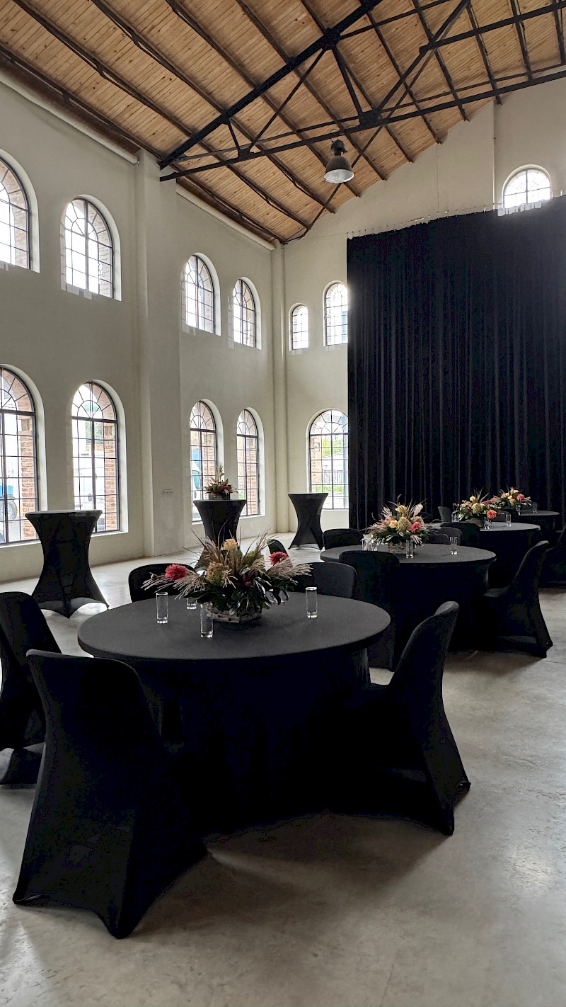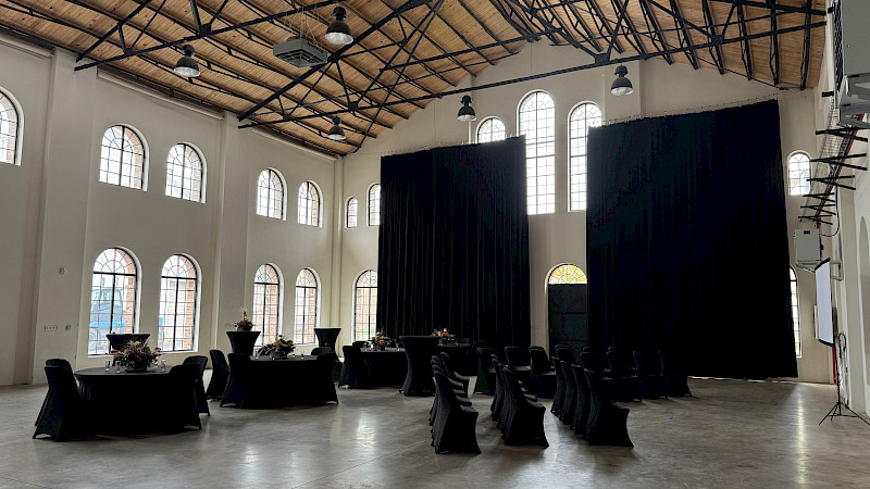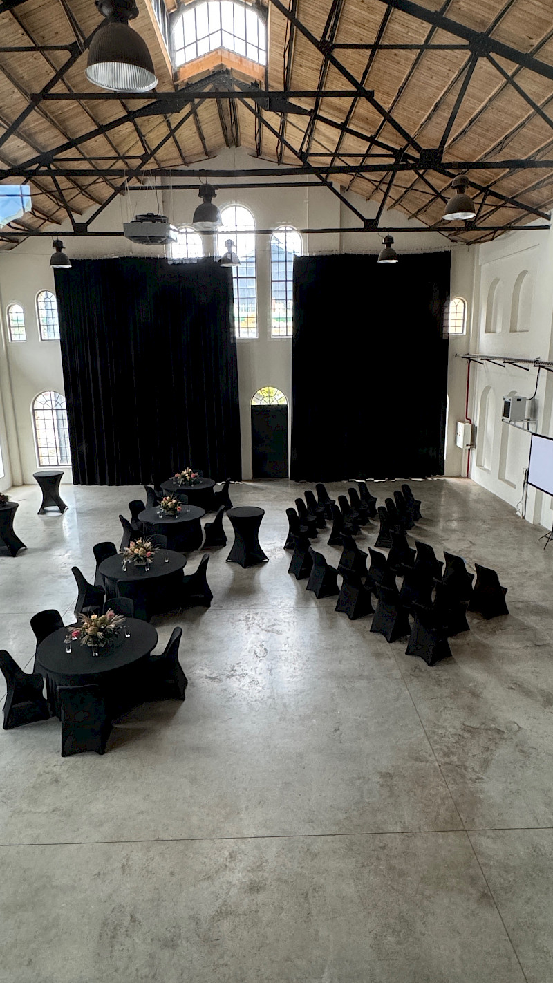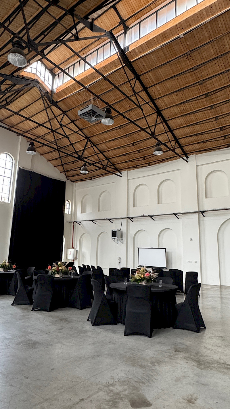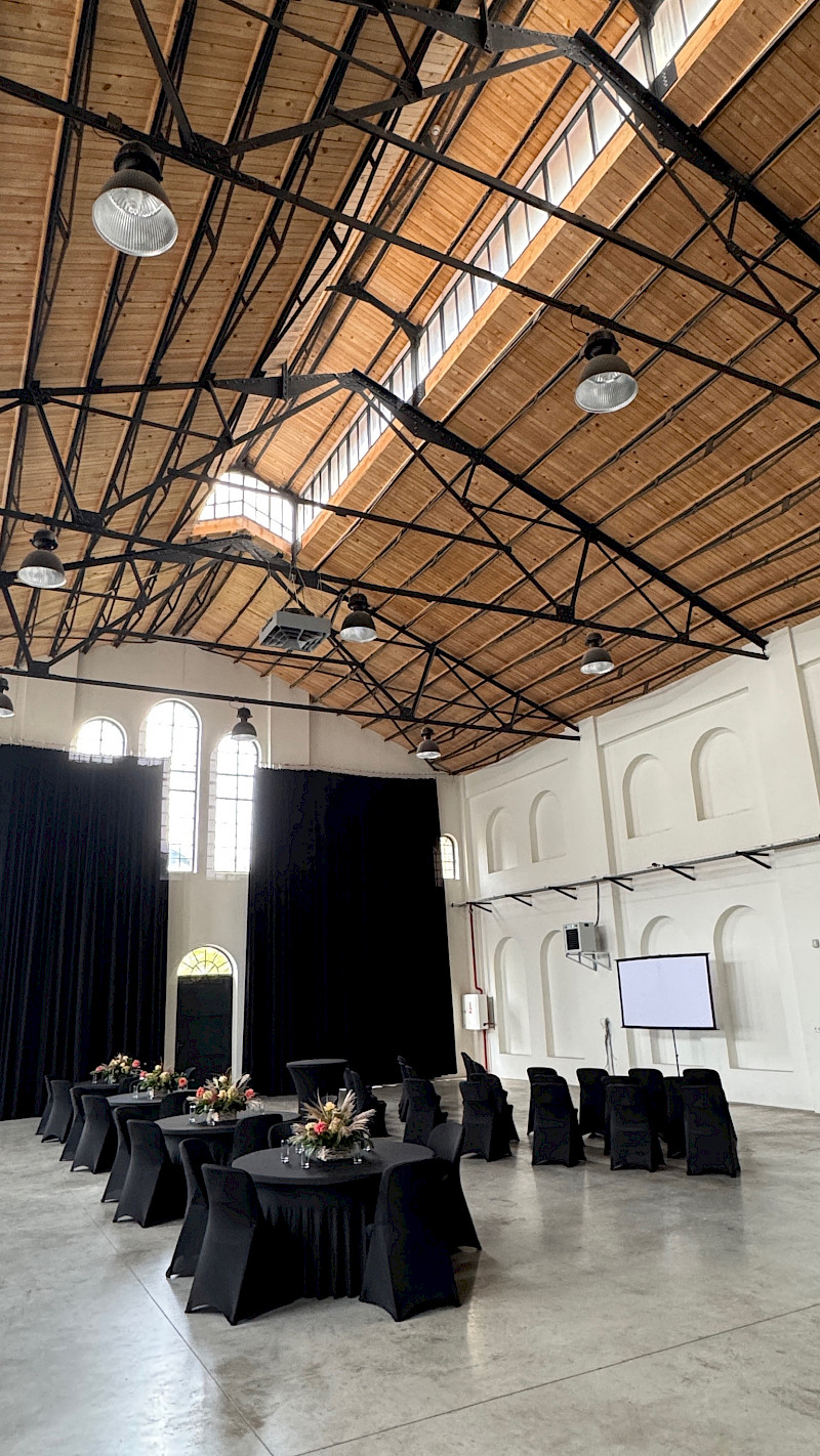 Industrial flexible event space with a capacity with variable layout according to your needs.