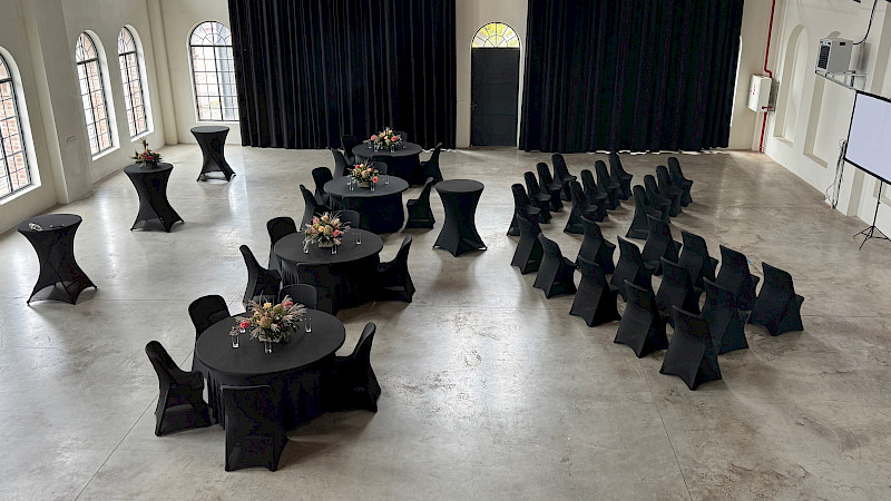 {: width=150 height=100 style="float:left; margin:26px"} A flexible environment with a capacity of up to 400 people depending on the nature of the event, high-quality technical equipment and variable layout according to your needs. Thanks to the raw charm of industrial architecture and carefully selected details, a space is created that will underline the atmosphere of every event.