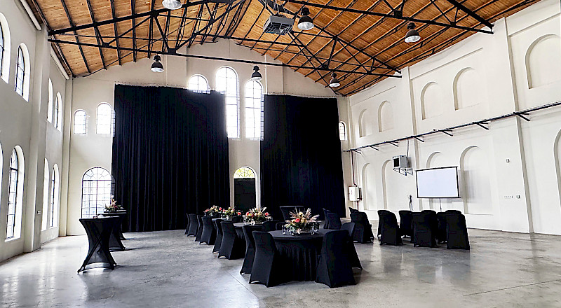 Today, it combines its industrial past with modern use for events, weddings, and meetings with character.