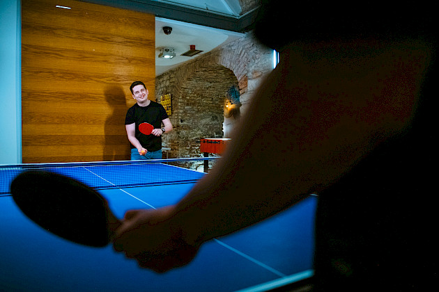 Networking s občerstvením u baru a společenské hry (pingpong, fotbálek)