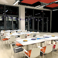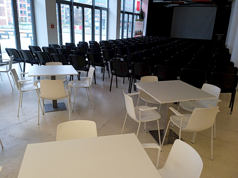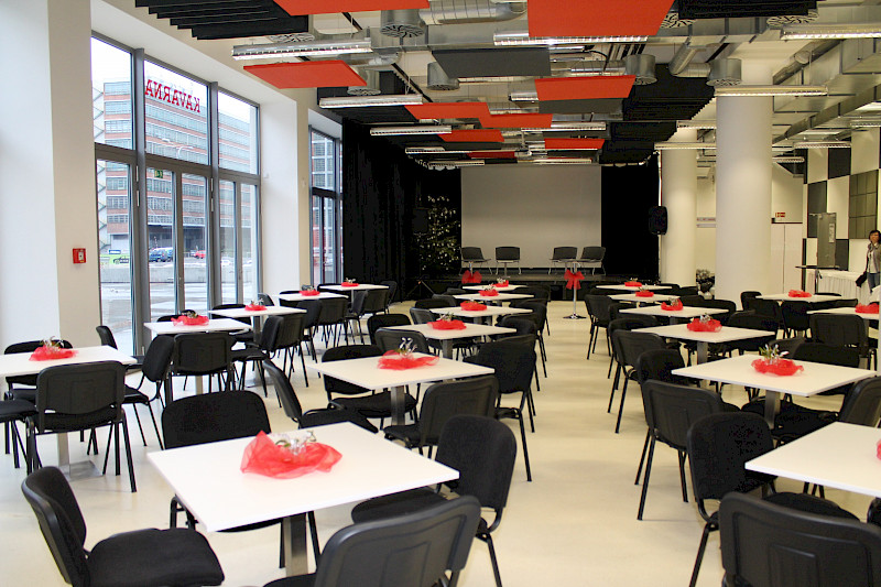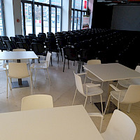 Vybavení: projektor (vstup HDMI pro připojení notebooku), plátno uhlopříčky 3 m, výkonné ozvučení, 2 mikrofony, pódium 6 x 4 m, řečnický pult, kavárenské stoly a židle, konferenční židle, bistro stolky, skládací stoly 120 x 60 cm, flipchart, menuboardy A3, pojízdné věšáky