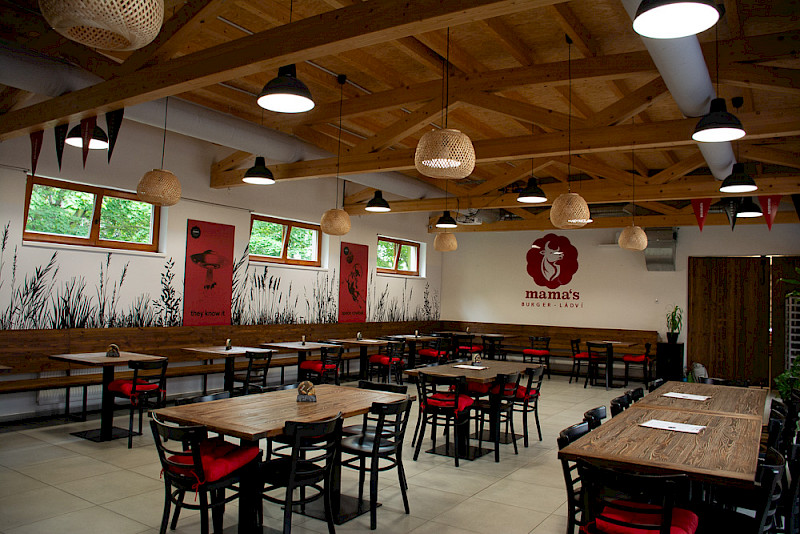 K dispozici je restaurace s klubovým zázemím. Areál leží 5 minut od metra C Ládví.
