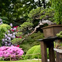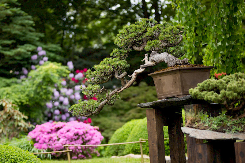 Tato dřevina se často pěstuje v japonských parcích a zahradách a v expozici zaujala roli krásné solitéry. Okolí stromu dotvořilo stylizované kamenné moře, ze kterého vyplouvají kameny symbolizující jednotlivé ostrovy japonského souostroví. Okolí doplňují zajímavé dřeviny ve tvaru polokoulí, které podtrhují krásný tvar šedesátileté borovice.
