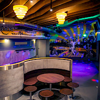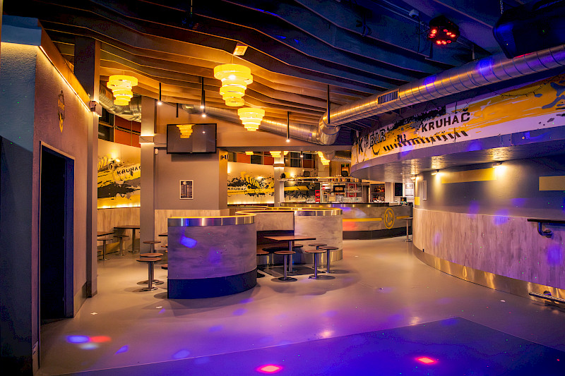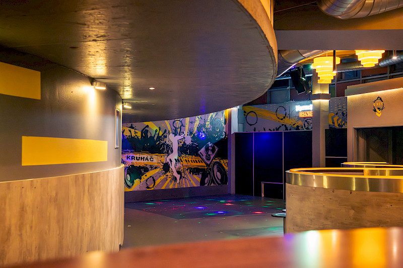 Poptat prostorKlub disponuje plně vybaveným barem, přibližně 50 místy k sezení a prostorným tanečním parketem.