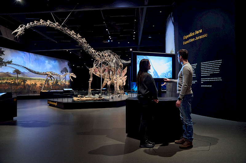 Mimořádně zachovalé, až 200 milionů let staré exponáty, skládající se až z 90 % původních kostí pravěkých dinosaurů, se rozpínají až do délky neuvěřitelných 24 metrů. Z jejich jedinečných příběhů se vám zatají dech.