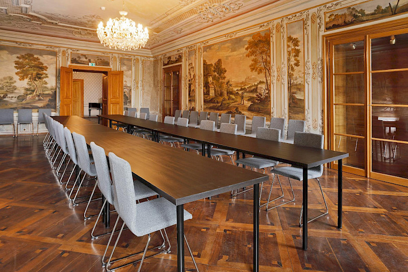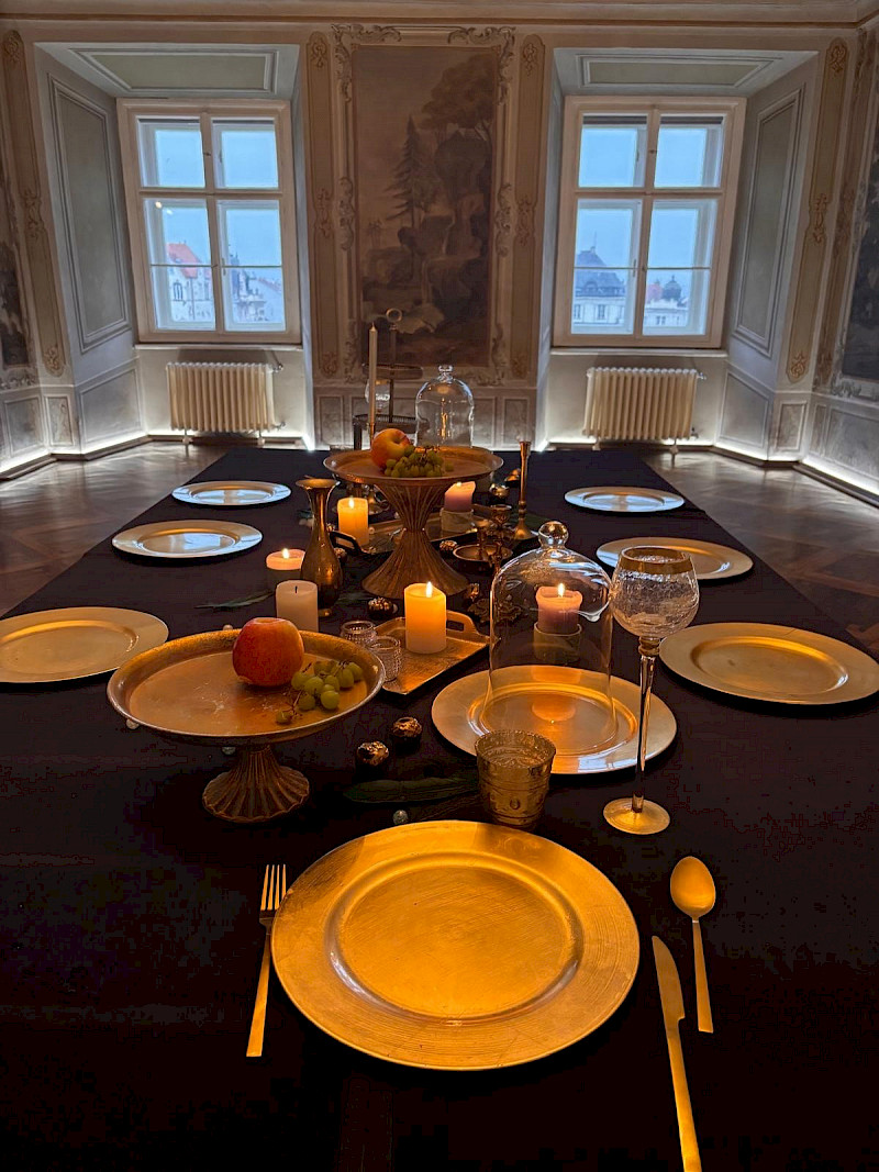V rámci vaší události zajistí i skvělý catering od vyhlášených místních podniků, sídlících přímo v paláci, díky kterému můžete spojit formální část akce s občerstvením. V případě zájmu o pronájem na školení či konferenci zajistí další potřebné vybavení jako např. plátno, projektor, ozvučení atd. Pro ty, kteří hledají prostor pro firemní večírky, oslavy nebo dokonce profesionální focení, je tento barokní freskový sál naprosto ideální volbou.