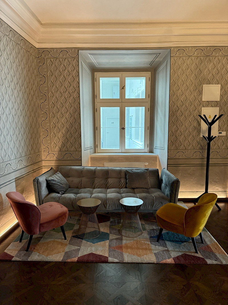 Sál nabízí historické prostory a předsálí, nádherný výhled na Zelný trh a přístup k 20 metrů vysoké vertikální zahradě v atriu, což dodává místu jedinečný genius loci. Tento luxusní prostor pro akce je unikátním prostorem v centru Brna s atmosférou. Pro ty, kteří hledají prémiový prostor k pronájmu na prestižní adrese.