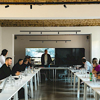 Větší salonek v prostoru, kde se setkává gastronomie, design a zážitek.