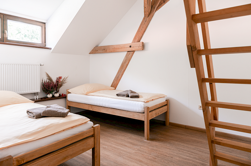 Jednou z našich velkých výhod je ubytovací kapacita. Nemusíte řešit přesuny hostů ani noční odvozy – vše zvládnete pohodlně na místě. Ubytujeme i více než 100 hostů ve 28 stylových pokojích rozdělených do tří budov: