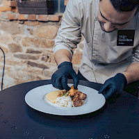 Naše kuchyně je srdcem každého eventu. Stavíme na lokálních surovinách a připravujeme menu přesně podle vašich představ – od slavnostního svatebního menu přes moderní raut a grilování na nádvoří až po snídaně, coffee breaky či obědy sladěné s programem dne.