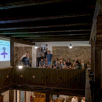 Přístup na terasu, přímé propojení ochozu s Mlýnicí a ubytovacími prostory. Klidnější část pro konverzace mezi hosty.