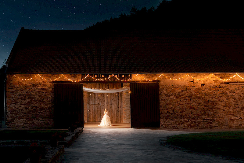 Autentická atmosféra, flexibilní prostor s vlastním barem (obřad → hostina → párty), přímá návaznost na nádvoří a kuchyň, ze které Vám budou servírovány pokrmy