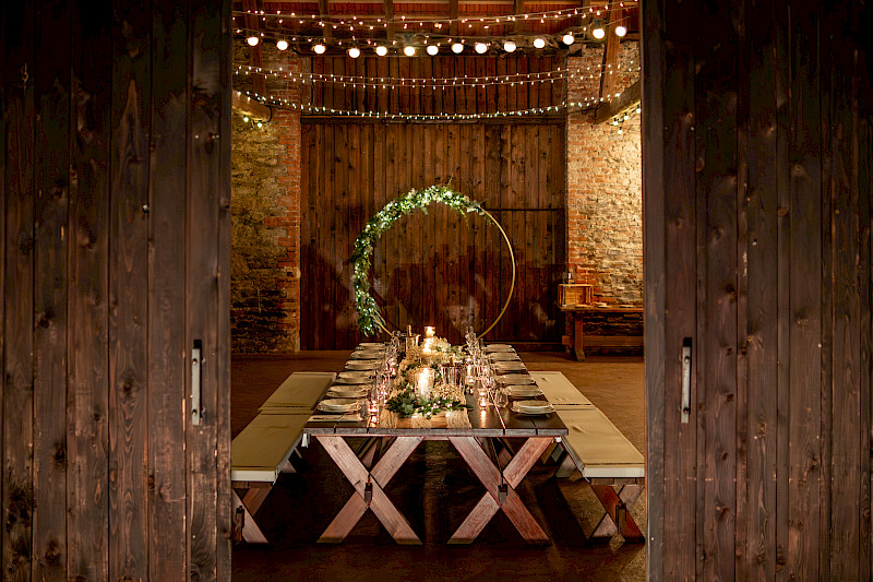 Rustikální srdce areálu: místo pro svatební hostinu, celofiremní setkání i večerní párty.