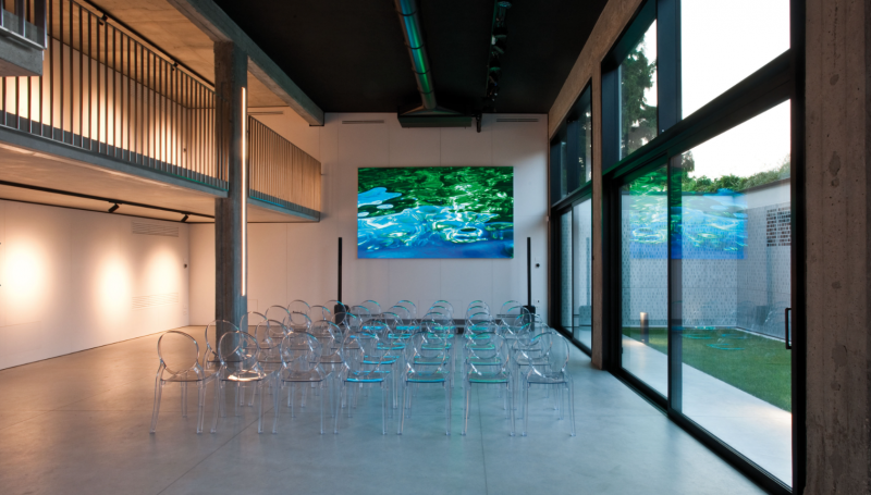 Poptat prostornachází se přímo před hlavním sídlem a nabízí moderní a elegantní prostředí, charakterizované výraznou současnou architekturou, přičemž jeho styl definují materiály jako kov a beton. Srdcem prostoru je exkluzivní zahrada, skutečná zelená oáza uprostřed městského kontextu, ideální pro chvíle odpočinku nebo venkovní akce. Velká okna vytvářejí plynulé propojení interiéru s exteriérem a zaplavují prostor přirozeným světlem.