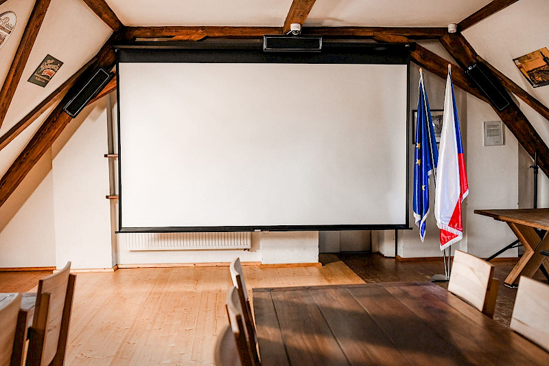 Místnost pro až 120 lidí. Přátelské nájemné. Projektor, velké plátno, skvělé ozvučení, bar (otevřen po domluvě), možnost coffebreaku.