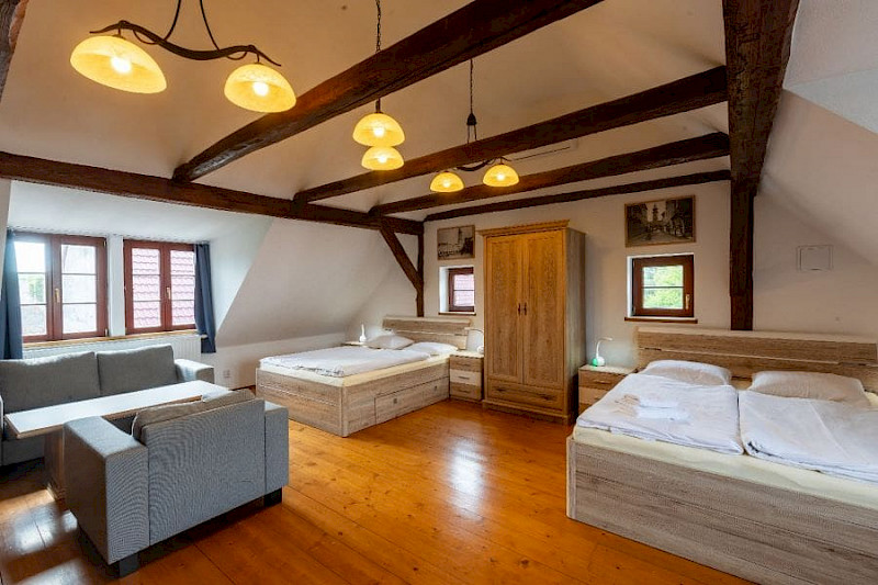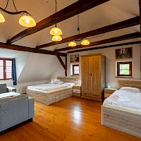 21 pokojů pro až 56 osob (s přistýlkami) v selském stylu. Snídaně v ceně. Pokoje jsou plně klimatizované. Hotel u Českých Budějovic v jižních Čechách má ideální polohu – kousek od města a zároveň v krásné přírodě PR Vrbenské rybníky.