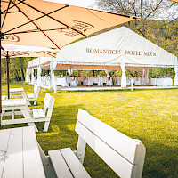 Celkový počet míst u stolů včetně party stanu 150 osob