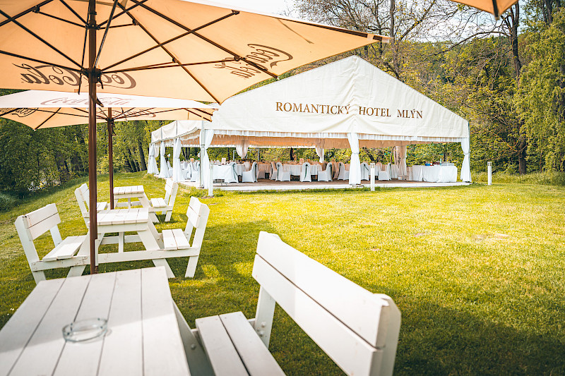 Klidná a romantická atmosféra areálu u řeky