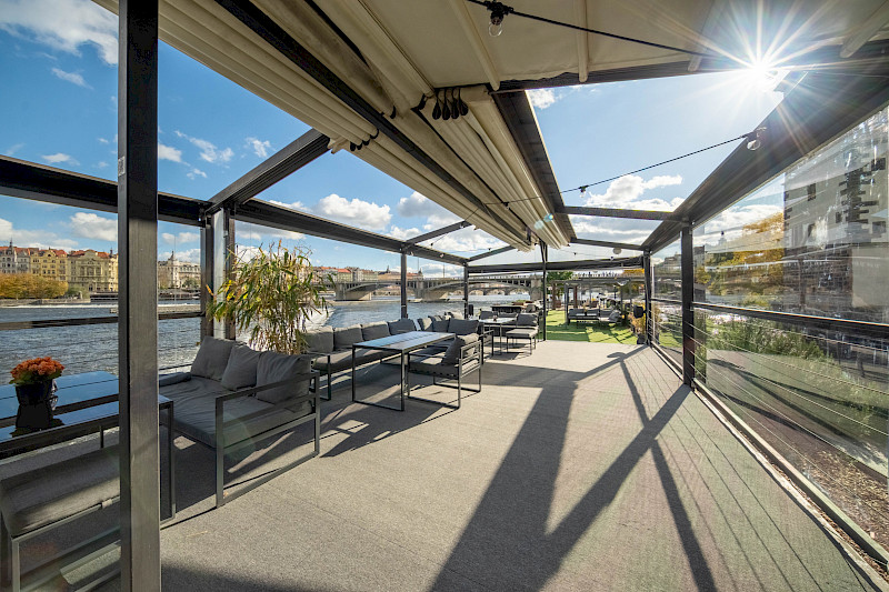 Plně otevíratelná střecha – v létě open-air vibe, v zimě krytý prostor