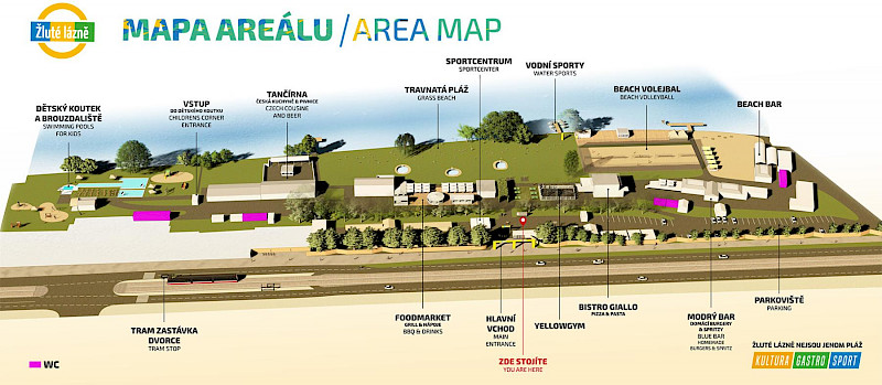 Areál nabízí moderní a variabilní zázemí pro firemní i soukromé akce – od menších workshopů a školení až po narozeninové oslavy či vánoční večírky. K dispozici jsou vnitřní eventové prostory Modrý bar a Bistro Giallo s kapacitou od 20 do 100 osob, které jsou dostupné po celý rok.