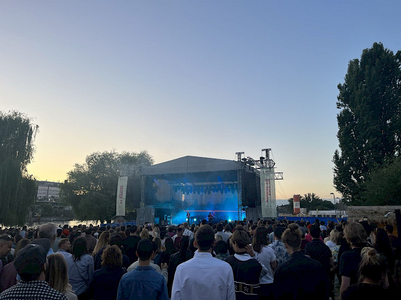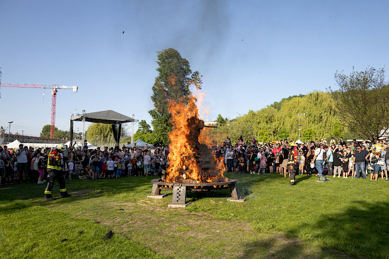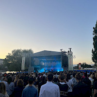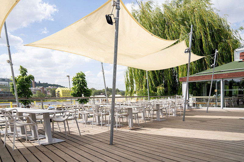 Areál pro venkovní akce na břehu Vltavy a s výhledem na Vyšehrad.