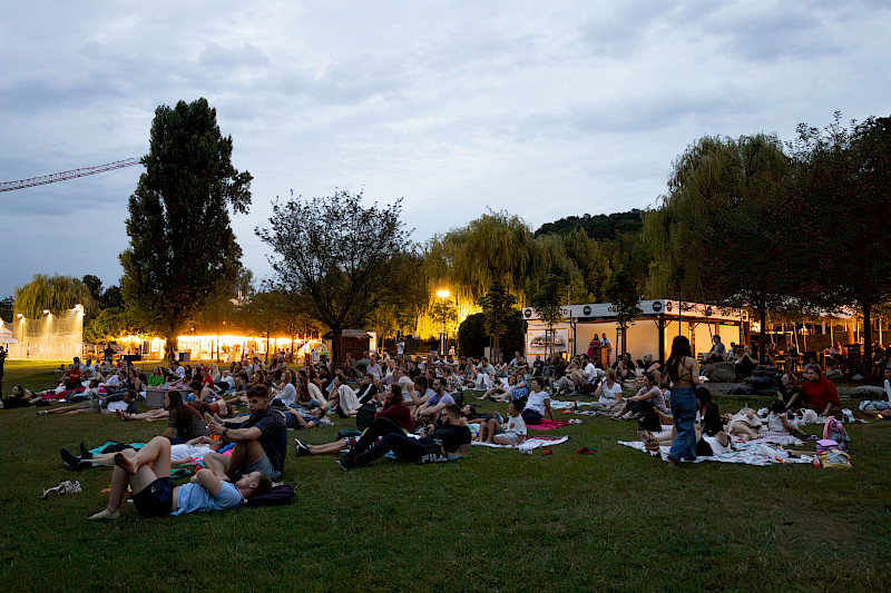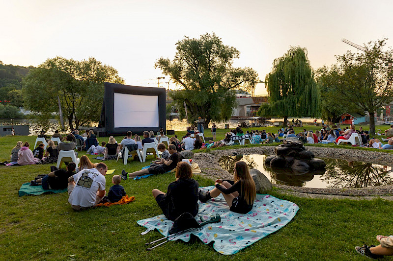 Poptat prostorTravnaté prostory s posezením a sportovními aktivitami na břehu Vltavy. Vhodné pro party, prezentace, open-air promítání, svatby, oslavy.